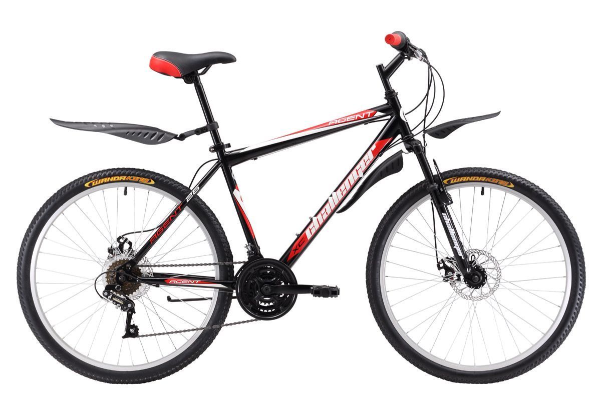 Горный велосипед, на стальной раме, Challenger Agent 26 D предназначен для прогулочного катания. Велосипед оборудован надёжными дисковыми механическими тормозами, эффективными в любую погоду. Трансмиссия велосипеда имеет 18 скоростей, переключение осуществляется "манетками" типа RevoShift (кольцо). Колёса на усиленных ободах крепятся в вилке эксцентриком. Такой тип крепления позволяет легко снять колесо при погрузке в автомобиль. Так же, благодаря эксцентрику, происходит быстрая регулировка седла по высоте. Горный велосипед Challenger Agent 26 D оборудован пластиковыми крыльями и подножкой. Вы также можете выбрать вариант горного велосипеда чуть дешевле и проще, с ободными тормозами - модель Challenger Agent 26.